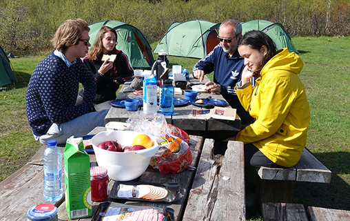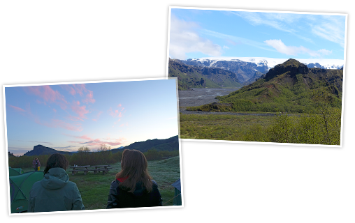 Bórsmörk, 20.46 uur. Na een stop bij een IJslandse staatsslijterij (die stipt tot 18.00 uur open was, dus Edwin moest zijn gaspedaal van zijn 4WD indrukken om er op tijd te zijn) komen we aan bij ons reisdoel voor de komende twee dagen: een bijna verlaten kampeerveld tussen de gletsjers Tindfjallajökull en Eyjafjallajökull.