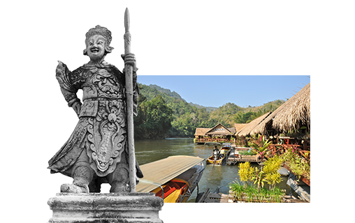 Na een bezoek aan deze duizelingwekkende metropool kom je tot rust in ons hotel aan de River Kwai in de jungle, dat gebouwd is op bamboevlotten. Vanuit je kamer spring je zo de rivier in en kun je heerlijk stroomafwaarts drijven in een rubberen band. Vervolgens slaap je een nachtje in Uthai Tani in een charmant onderkomen, midden in de natuur. De gastvrije eigenaar bereidt graag een heerlijke barbecue en zangtalenten worden hier ontdekt tijdens een karaoke. Op de fi ets verken je de mooiste plekken van Sukhothai. In het Historisch Park, met eeuwenoude ruïnes van tempels en tal van schitterende Boeddhabeelden, waan je je in lang vervlogen tijden van het vroegere Siam. In Lampang kun je een bezoekje brengen aan het Elephant Nature Park, een toevluchtsoord waar gewonde en mishandelde olifanten een veilig heenkomen hebben gevonden. Bijzonder zijn ook de Birmese tempels die in de omgeving te vinden zijn. In Chiang Mai, de culinaire hoofdstad van Thailand, is een bezoek aan de nachtbazaar een absolute must. Dwalend langs de verlichte kraampjes vind je zeker een leuk souvenir. Tot de hoogtepunten van deze reis behoort zeker een excursie naar authentieke dorpjes in de hooglanden, waar bergvolkeren nog op traditionele wijze leven. En de reis naar Thailand is pas echt compleet als je een paar dagen op een van de tropische bounty-eilanden hebt doorgebracht.
