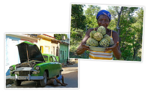 Na een forse klim arriveren we in het weelderige Las Terrazas, een vroegere Franse koffieplantage waarvan de slavenbarakken nog resteren. Die avond eten we naast een kerk in een paladar, een klein familierestaurant. Het is voor toeristen de afgelopen jaren gemakkelijk geworden om bij mensen thuis te eten en te logeren. De beloning is een goede indruk van de Cubaanse samenleving. In de huiskamer vertelt bewoonster Rina over het schooltje dat na de revolutie in de kerk is gekomen, over de kunst van haar man die aan de muur hangt en over de kamers die ze verhuurt. Een beetje Cubaan probeert werk met werk te maken. Viñales, ooit een arm tabaksdorp, is nu de hotspot in het westen door de prachtige geërodeerde kalkgebergte te midden van tabaksplantages. Vrijwel iedereen hier doet ‘iets in toerisme’ en kan afrekenen met de geliefde convertible pesos. Zij behoren tot de groep van de meer welvarende Cubanen die spullen kunnen kopen in valutawinkels.