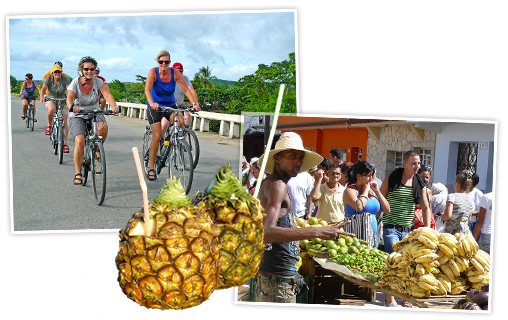 We beginnen de fietstocht in het westelijk deel van Cuba waar we onder meer Soroa, Las Terrazas en Viñales bezoeken. Alle fietsen van het verhuurbedrijf zijn verschillend, de eigenaar heeft ze opgekocht van toeristen. Dit is een typisch voorbeeld van een privébedrijf dat sinds een paar jaar door het regime is toegestaan. Onze tegenliggers zijn stokoude USSR tractoren en gedeukte barrels uit de jaren veertig en vijftig toen casino’s en Amerikanen nog veel geld in het laatje brachten.