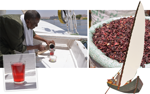 Carcade thee is een typische thee die in Egypte wordt gedronken. Gemaakt van de grote, rode bladeren van de hibiscusbloem en van nature bloedzuiverend en cholesterolverlagend. Op de rode blaadjes wordt heet water geschonken en aangevuld met veel suiker. Je kunt de drank warm of koud drinken. Vooral koud is het heerlijk. Het heeft een zoete, limonade-achtige smaak. Ik heb een grote zak theeblaadjes mee naar Nederland genomen zodat ik er hier in Nederland ook nog van kan genieten. Heerlijk op een warme zomerdag.