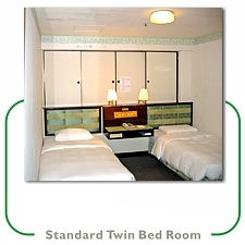 Het 4 verdiepingen tellende hotel heeft 68 airconditioned kleine kamers, voorzien van een eigen toilet en douche. Alle kamers hebben een televisie, radio en koelkast.
