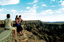 Gisteren al stiekem in Namibië geweest, toen we de Oranjerivier overzwommen. Vandaag volgen we de echte grensprocedure. Na een lange rit heerlijk gewandeld bij de grote kloof van de Fish-rivier, die na de Grand Canyon de grootste ter wereld zou zijn. De ondergaande zon met een glaasje champagne bezegeld. Bij terugkomst had Hesbon, onze campcourier, het eten al klaar en hoefde ik mijn taken van vandaag als hulpkok niet meer uit te voeren. Zijn visschotel was ontzettend lekker, maar we hebben tot nu toe sowieso niet te klagen over het eten, het smaakt steeds weer bijzonder goed. Na het diner gezellig met de hele groep bij het kampvuur ‘stoere’ verhalen verteld.